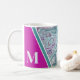 Fille Élégante Turquoise Fuchsia Agate Monogramme initial de café Mug. Les cristaux et les géodes continuent d'être une tendance favorite ! Cette impression présente et une image rapprochée d'une roche de géode turquoise et violette (magenta) vibrante, avec de petits cristaux. Ajoutez votre initiale pour en faire la vôtre.