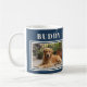 Elegant Navy Blue Dog Pet Photo Mug. Organize your pet's memories or documents with this beautiful customizable mug. This design allows you to personalize the dog's name and a photo. The elegant navy blue background with a classic framed photo makes it a perfect keepsake or a thoughtful gift for any dog lover.