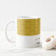 Elegant Gold BIENVENUE À NOTRE MAISON tasse à café invité avec texte personnalisable afin que vous puissiez créer votre propre accueil et/ou ajouter votre nom, par ex. Bienvenue dans notre maison d'hôtes, etc. Élégante typographie de script et motif de subtile carrelage disant WELCOME en fait un établissement élégant pour accueillir les invités à votre maison, votre maison d'hôtes ou à votre réception d'affaires. Disponible dans d'autres couleurs tendance et populaires. Correspondance livre d'or et autres cadeaux disponibles. Choisissez parmi une large sélection de cadeaux d'accueil et d'hospitalité conçus par Berean Designs.