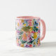 Mug Élégant Pastel rose Abstrait Floral Monogrammé