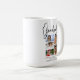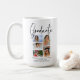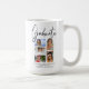 Élégant Script Multi Photo Graduation Graduate Coffee Mug présente cinq de vos photos préférées de votre diplôme d'études supérieures ou secondaires avec le script tourbillonnant moderne de calligraphie noire superposition "Graduate". Simple, élégant et classe. Créé par ©Evco Studio www.zazzle.com/store/evcostudio