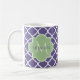Mug Élégant violet Quatrefoil et nom vert Monogramme