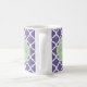 Une tasse à motif quatrefoil pourpre et coqueteuse avec un badge à coquille vert tendre que vous pouvez personnaliser en ajoutant votre nom et votre initiale monogrammée à. Il fait partie de la collection de printemps Ultra Violet et Nile Green.