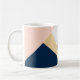 Stylish, modern and abstract geometric triangles color block design featuring faux gold, marble, navy blue and light peach color block.