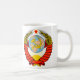 Revivez la guerre froide avec cette tasse - les caractéristiques l'emblème soviétique, placent sur un arrière - plan blanc. Le même emblème est répété sur l'avant et le dos.