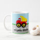 Les couleurs primaires adorables et fraîches sont l'élément clé de ce cadeau à thème de construction de camions à benne pour enfants ou garçons mignons. Comprend un camion à benne de travail avec un corps rouge, un lit à benne jaune et des rondelles de roue, des gaz d'échappement et des pare-chocs gris. L'arrière - plan contient une route asphaltée grise avec des marques blanches, vert pour l'herbe et bleu pour un ciel. Un grand thème pour un décor de garçon, de constructeur et de bâtiment des métiers ou de grande machine à enfant décoration de chambre à thème. Tous les Designs Copyright © www.CustomInvitesOnline.com Ce design est disponible en collection complète !