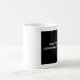 La tasse blanche et noire indique "la première conversation de café ensuite"