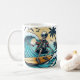 Mug Esqueleto surfeando en una playa