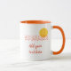 Texte d'été tapé avec police de fusion. Un disque jaune symbolise le soleil. Les chaudes journées d'été. La saison des vacances en bord de mer, en forêt ou dans un autre endroit agréable. Drôle tasse à café personnalisable. Vous pouvez modifier ou supprimer le texte modèle.
