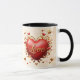 Un design romantique et élégant d'inspiration Valentine avec un coeur rouge audacieux au centre avec "Amour" écrit magnifiquement à l'intérieur. Entouré de coeurs dorés chatoyants dans l'arrière - plan, le design scintille de touches dorées, créant une atmosphère chaleureuse et aimante. "Image originale générée par Meta AI. L'IA a généré des oeuvres d'art. Licence CC BY-SA 4.0."