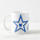 étoiles bleues. Deux grandes étoiles de chaque côté avec votre initiale au centre. Le centre du design est trois petites étoiles bleues dans le groupe décalé.