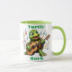 Une tortue caricaturale joyeuse avec une guitare captive alors qu'elle brasse des cordes, entourée de notes musicales tourbillonnantes et de couleurs vives, évoquant un sentiment de joyeuse fête musicale.