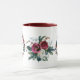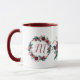 Rustique moderne famille de Noël monogrammed mug avec aquarelle style traditionnel rouge bordeaux et pin vert saint baie, poinsettia, roses rouges et branches de sapin couronne saisonnière et un bouquet rose sur un arrière - plan blanc clair (changeable).++++++++++ Personnalisez-le avec votre nom de famille initial!