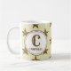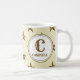 Cette tasse de thé ou de café monogramme du matin est une excellente façon de créer une touche spéciale à votre matin. Un motif doré apparaît contre un arrière - plan beige. Votre monogramme est présenté dans la police de l'Ouest doré avec le nom de famille. Customisez facilement les couleurs et le monogramme initial pour convenir à votre désir. Design original - C. McGouldrick