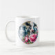 This ceramic coffee mug is shown with a cute farm cow art print.