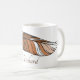 Feather in shades of brown, and white. Beneath is name to be personalized, in dark brown script.