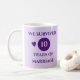 White Coffee Mug idée cadeau pour votre femme de célébrer 10 ans de mariage. Cette tasse n'est pas seulement pour le café, c'est un toast à 10 ans d'aventures, de rires et d'amour qui ont rendu votre voyage étincelant. Vous vous souvenez de ce premier regard nerveux, des voeux chuchotés, et de chaque baiser volé qui a mis vos coeurs en ébullition ? Cette tasse claque à ces souvenirs en murmurant : "Nous l'avons fait, mon amour !" C'est un amour qui est patiné à chaque tempête, devenu plus fort à chaque année qui passe, et qui brillera à jamais. Salue à 10 chapitres, et à une vie plus de "Je t'aime chuchoté sur des tasses de café vapeur. Pourpre avec le coeur de l'amour.