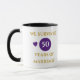 Idée cadeau de café noir / blanc bicolore pour votre femme pour célébrer 50 ans de mariage. Cette tasse n'est pas seulement pour le café, c'est un toast à 50 ans d'aventures, et de rire. Vous vous souvenez de ce premier regard nerveux, des voeux chuchotés, et de chaque baiser volé qui a mis vos coeurs en ébullition ? Cette tasse claque à ces souvenirs en murmurant : "Nous l'avons fait, mon amour !" C'est un amour qui est patiné à chaque tempête, devenu plus fort chaque année qui passe, et qui brillera à jamais. Salue à 50 chapitres, et à une vie plus de "Je t'aime chuchoté sur des tasses de café vapeur. Texte d'or avec coeur d'amour violet.