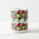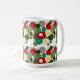 Add a touch of modern holiday elegance to your mornings with this geometric Christmas mug, featuring circular patterns in festive red, green, and gold tones, accented with snowflakes, Christmas trees, and mistletoe.