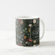 Célébrez la saison avec style avec cette Mug de café cadeau de Noël personnalisée. Cette tasse festive présente un arrière - plan botanique foncé avec verdure, pinecones, baubles, arcs et baies, le tout magnifiquement accentué par votre initiale en calligraphie élégante et votre nom dans un cadre élégant de coin billet. Parfait pour faire un don ou profiter de votre boisson de vacances préférée. Faites vos matins joyeux et lumineux avec ce cadeau réfléchi.