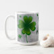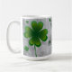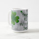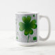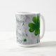 Savourez votre café du matin avec une tasse à café Shamrock St. Patrick's Day. Le design de la tasse à café est orné d'un trèfle coloré à quatre feuilles avec l'accueil "Happy St. Patrick's Day" contre un arrière - plan en marbre gris. Autres articles disponibles avec cette conception.