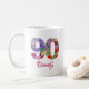 90e fête d'anniversaire Floral Fleurs Moderne 90 ans de café Mug. Joliment photographié et conçu, cela fait un cadeau parfait pour une femme extraordinaire. Customisez-le avec le nom de la fille d'anniversaire pour le rendre vraiment spécial. Bon appétit !
