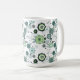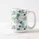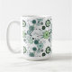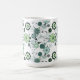 Cette tasse de café en céramique est présentée avec un joli design d'impression florale dans les couleurs de l'aqua et du vert. Customisez cet objet ou achetez tel quel.