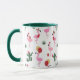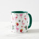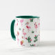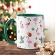 Ce design présente un motif de flamants roses avec ballons de fête et casquettes de Noël parmi des plantes de cactus fleuris. #noël #fêtes #saisonnières #cuisine #cactus #café #cadeaux #flamingo #tasses