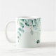 Un arrière - plan vert et blanc couleur eau. Décoré de feuillage de verdure d'eucalyptus et de fougère de bois. Personnalisez et ajoutez un nom.