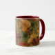 Mug avec un joli faux motif de feuilles d'automne en or, rouge et vert.