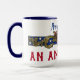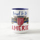 Mettez votre patriotisme dans votre bouche avec ce magnifique design de 15 oz. tasse à café en céramique munie d'une bannière et d'un bouclier ornés de feuilles dorés, rayures rouges et blanches et étoiles bleues, sandwich entre la légende à deux lignes : "Fier D'Être Américain !" Les légendes peuvent être personnalisées sans frais supplémentaires. La tasse intérieure est bleue royale (pas de taches!) avec poignée correspondante.