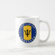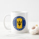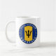 Le drapeau national de la Barbade est imprégné d'un cercle qui lui-même est coloré dans les couleurs du drapeau. Avec les étoiles décoratives, il y a le texte patriotique et fier.