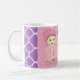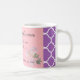 Un bébé adorable gardienne avec un bébé assis vêtu de rose sur un arrière - plan rose pastel avec un groupe de roses. Le nom de l’enfant figure en haut dans les grandes lettres décoratives, et en bas et en bas, il y a aussi la date et l’heure de naissance de l’enfant. Au centre se trouvent les statistiques de naissance, la longueur et le poids. Un souvenir parfait pour la nouvelle petite fille. Tout cela sur un arrière - plan motif de quatrefoil rose violet.