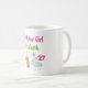 Une tasse à café personnalisée qui dit fille d'anniversaire et votre âge personnalisé. Parfait pour remplir avec des bonbons pour une fille d'anniversaire spéciale. Conçu avec une jolie illustration d'un lion souriant portant un casquette de fête et un mouton flou avec des ballons d'anniversaire.
