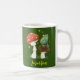 Un beau conte de fées a inspiré l'illustration d'un prince de grenouille assis sur un champignon et regardant les lucioles. La tasse à thème de grenouille à bois blanche est personnalisable et vous permet d'ajouter votre nom !