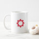 A mug with a design with the flag of Saitama Prefecture in Japan (埼玉県, Saitama-ken), a white flag with a red symbol