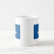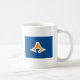 A mug with a design with the flag of Shizuoka Prefecture in Japan (静岡県, Shizuoka-ken), a blue flag with a white and yellow symbol