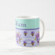 Pansy Flower Yellow Aqua Stripe Pansy floral Kitchen Mum's Mother's Day mug, avec un nom entièrement personnalisable. Ce joli design floral vient compléter n'importe quel décor. Conçu à partir d'une de mes peintures à fleurs originales.