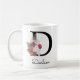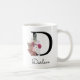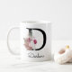 Tasse initiale rose boho moderne, cadeau de Noël ou d'anniversaire parfait pour une fille, une mère, une tante ou une sœur. Personnalisé avec le monogramme de la lettre D et un nom. Autres lettres disponibles dans ma boutique.
