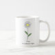 Une tasse avec une illustration de fleur de marguerite botanique en couleurs pastel (Leucanthemum vulgare) et un texte personnalisable en bas : un joli cadeau pour une fille qui aime les fleurs! La marguerite est la fleur de naissance d'avril et elle symbolise la gentillesse, la pureté, l'innocence, la joie et la joie.
