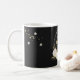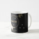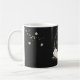 Magnifique mug à café noir avec fleurs blanches et feuilles dorées