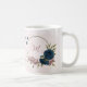 Magnifique tasse à café romantique avec des fleurs roses et bleues marine et quelques jolies feuilles .