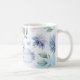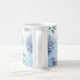 Un délicieux mélange de fleurs bleues et de papillons roses délicats sur un arrière - plan bleu clair doux.