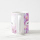 Une tasse avec une belle photo avec des fleurs de cerisiers roses. Image rêvée avec lumières bokeh et étincelles.