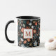 Mug Fleurs modernes Feuille noir orange bleu Monogramm