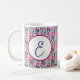 Mug fleurs rose et bleu et rayures blanches monogramme