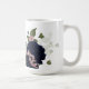 Magnifique mug café botanique aux fleurs roses et bleues marine avec feuilles vertes romantiques.