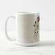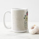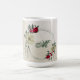 Tasse à café unique et magnifique avec des fleurs rouges romantiques et jaune pâle et des feuilles vertes.