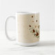 Tasse à café unique avec des fleurs en terre cuite rustiques romantiques et des feuilles vertes.