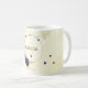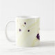 Belle tasse à café avec fleurs violettes royales et feuilles dorées sur fond de marbre